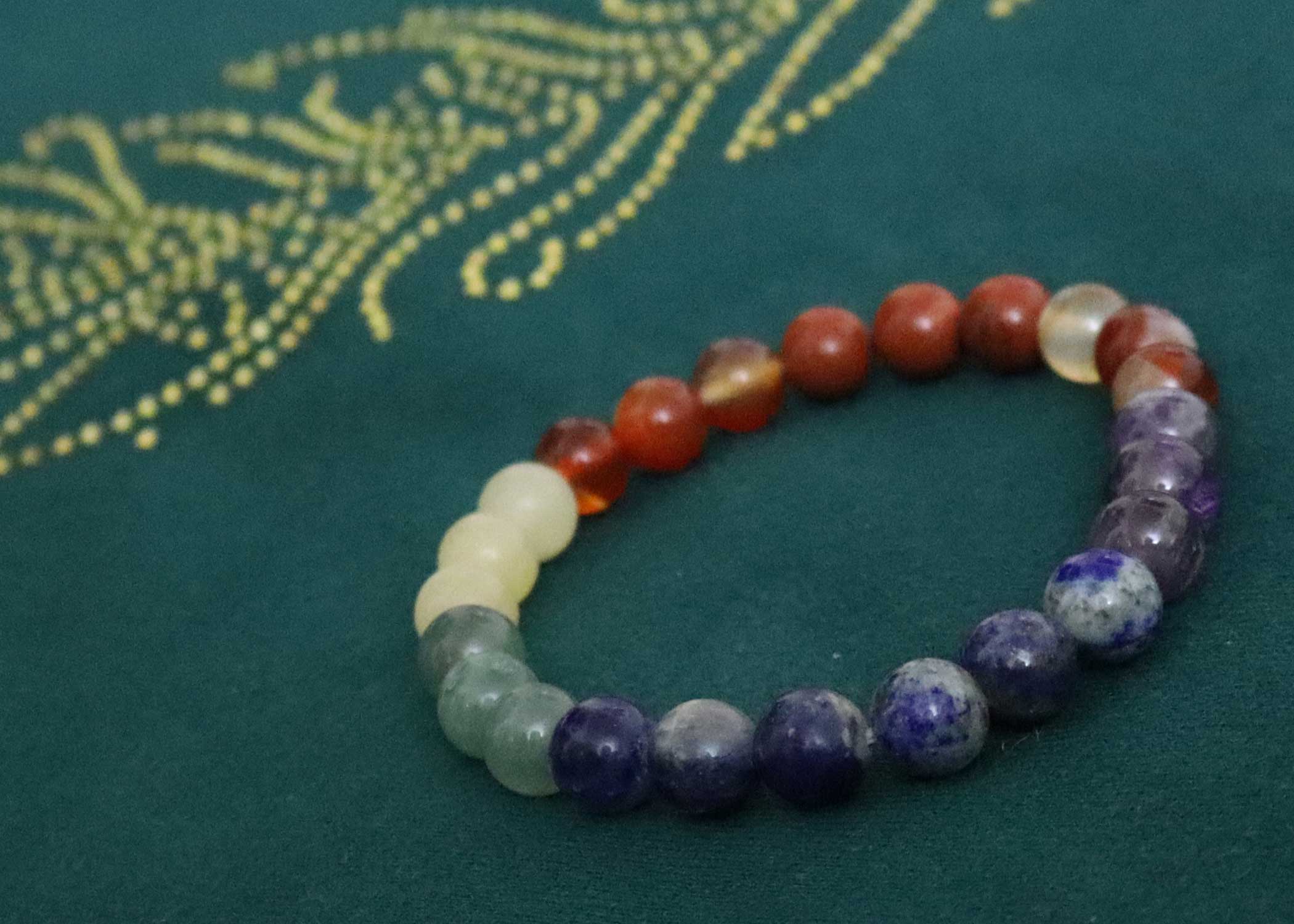 This 7 Chakra Bracelet brings together seven powerful gemstones, each aligned with a major energy center in the body. Amethyst, Lapis Lazuli, Blue Aventurine, Green Aventurine, Yellow Quartz, Orange Aventurine, and Red Jasper work together to balance, energize, and align your chakras. The bracelet creates harmony between body and mind and is ideal for daily wear or spiritual practice.