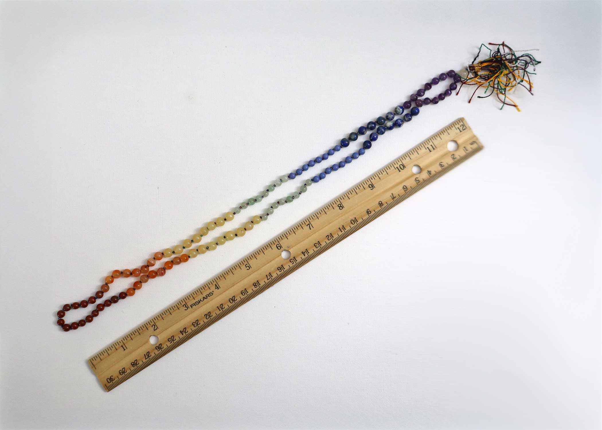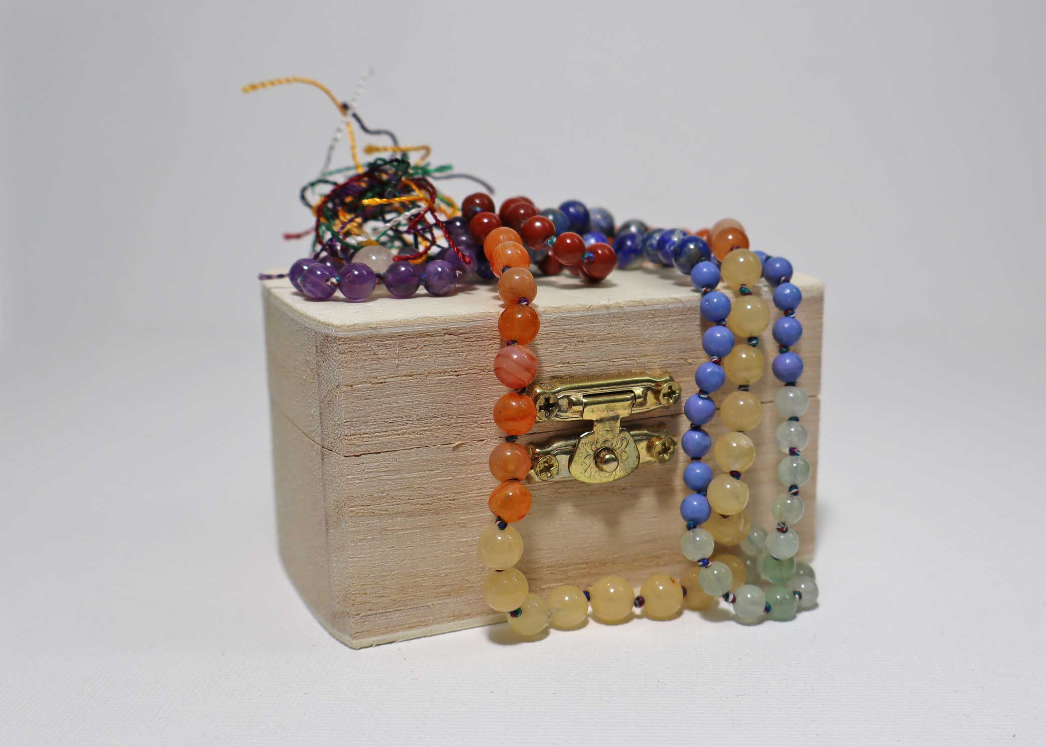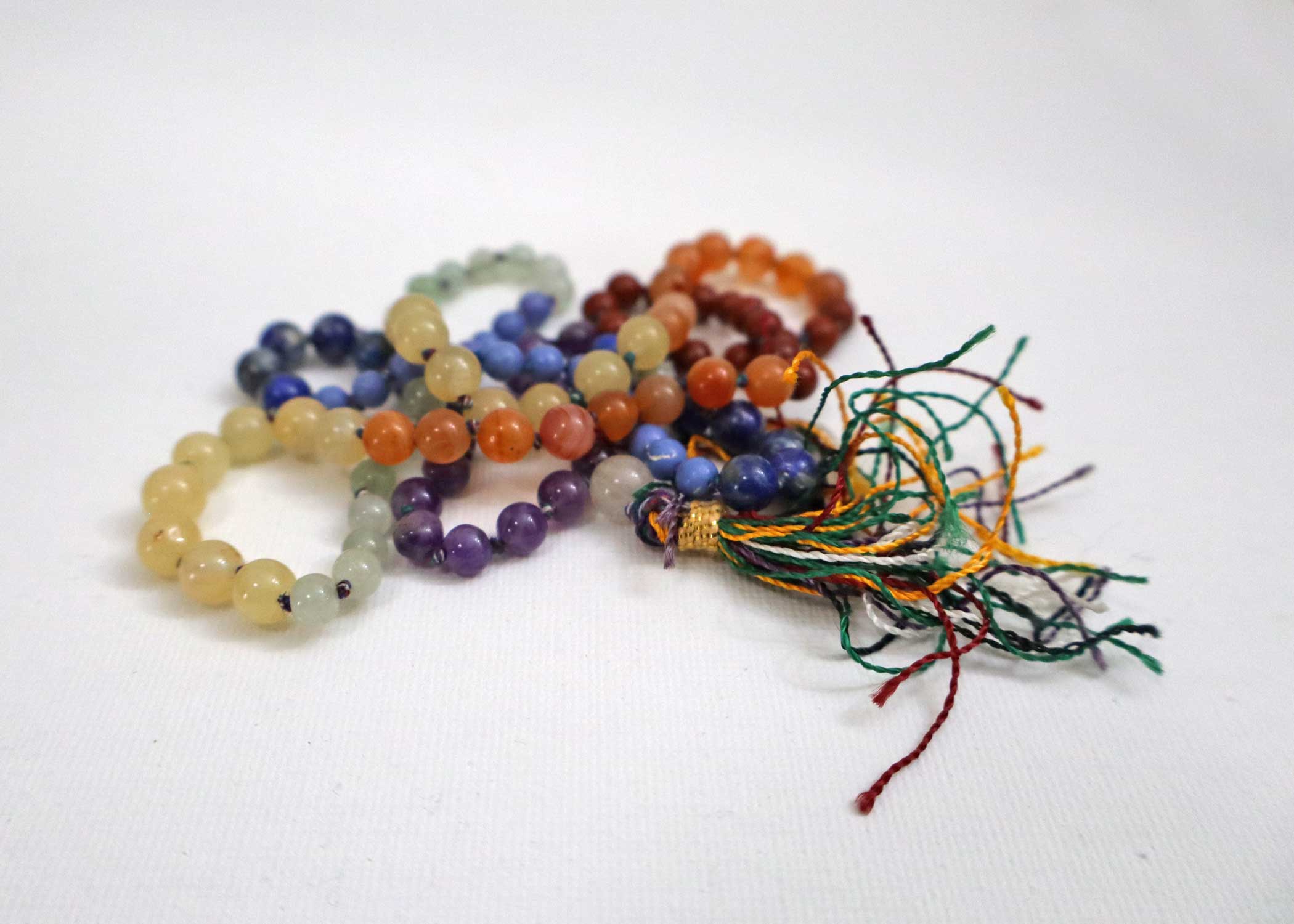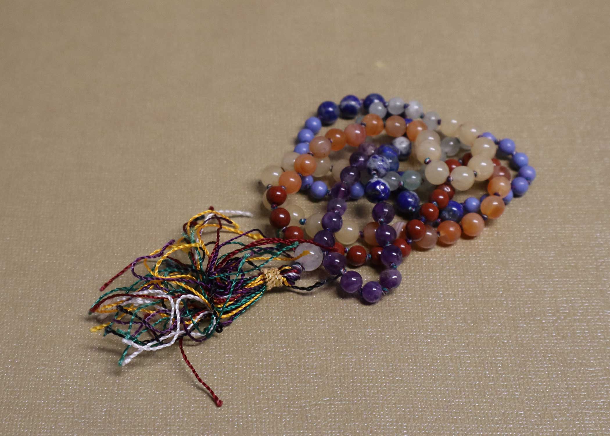 Traditionally meditation is done with a counting mala. This 7 chakra gem stone mala serves a dual purpose in being a meditation mala that is made with 7 crystals that coordinate with the 7 core enrgy centers of the body, helping in balancing the energy cores. The balance of energy points are essential in keeping a balanced physical and mental wellbeing. The crystals include Amethyst for purpose, Lapis Lazuli for intuition, Blue Aventurine for communication, Green Aventurine for love, Yellow Quartz for self-worth, Orange Aventurine for passion, and Red Jasper for grounding. The mala helps boost focus, calm the mind and spread healing energy. The beautiful 7 chakra mala is tantrically energized with peacock feathers and provides grounded dynamic energy.
