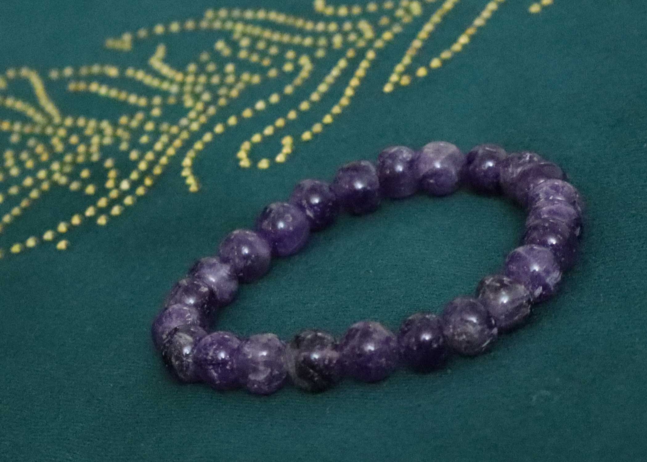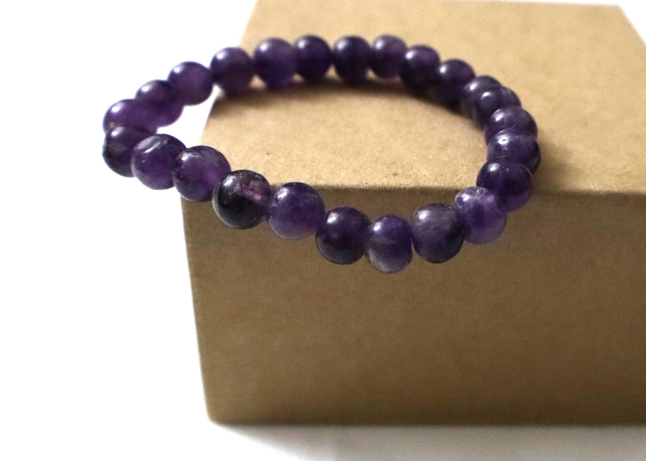 This deep purple amethyst bracelet is a calming and spiritually enriching tool. Known to align with the crown chakra, amethyst helps in calming the mind, improving focus, and promoting emotional balance. It is especially helpful for meditation, stress relief, and enhancing intuition. The bracelet is perfect for those looking to center their thoughts and bring peace to their daily life.